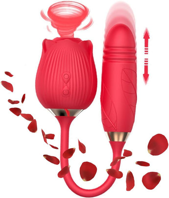 A versatile two-piece set combining a rose-style clitoral vibrator with a G-spot thrusting dildo. Designed for targeted pleasure and smooth comfort, both pieces feature a soft silicone exterior and an eye-catching red finish.